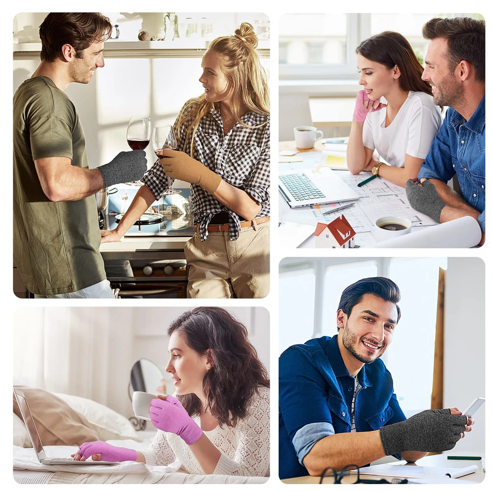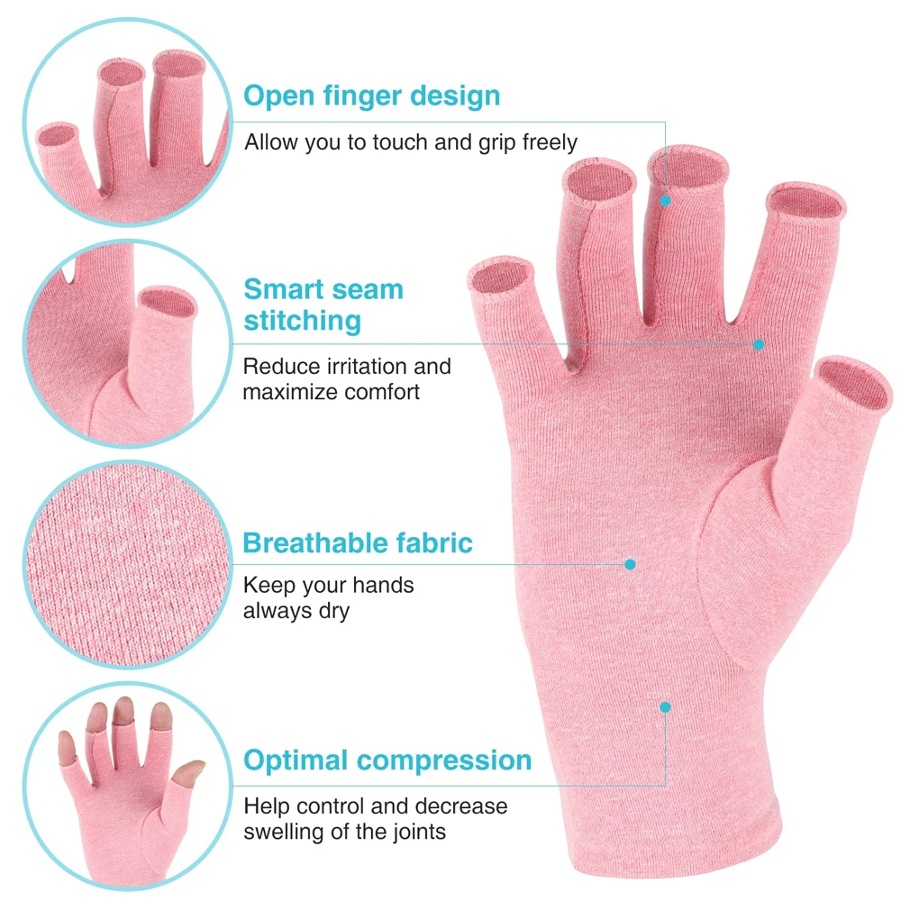 Dankzij de lichte, gerichte compressie verbeteren deze handschoenen de bloedcirculatie en verminderen ze ontstekingen, terwijl het vingerloze ontwerp zorgt dat je moeiteloos kunt typen, schrijven of je smartphone gebruiken.